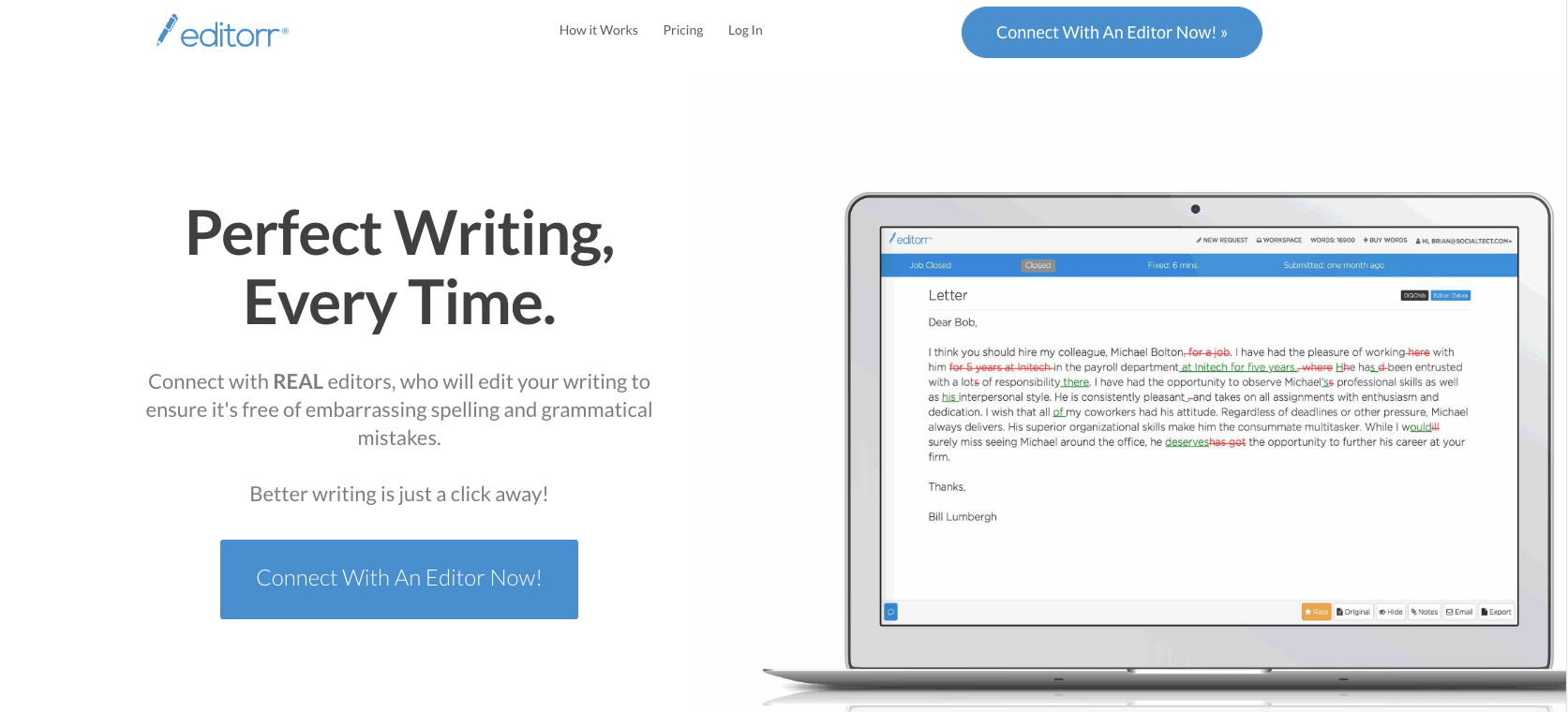 Editorr.com fills a gap between using a software program like Grammarly and hiring a freelance editor.