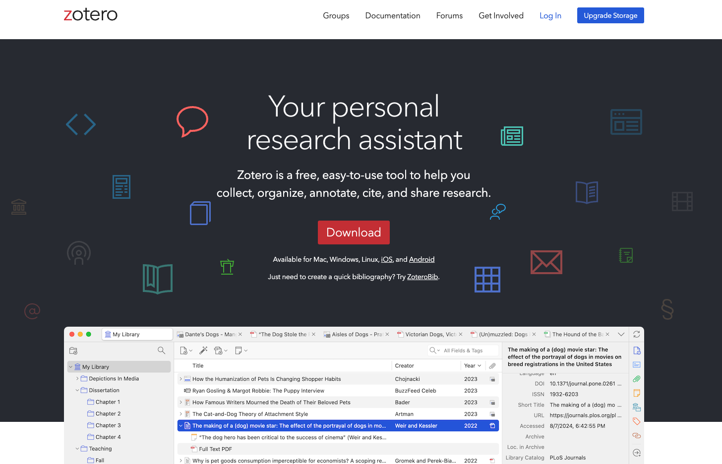 Zotero was launched in 2006 by an independent non-profit organization. Zotero stores your data on your computer, making it a good option if you are concerned about data privacy. However, please note that you will need to share your data with Zotero to use its sync feature.