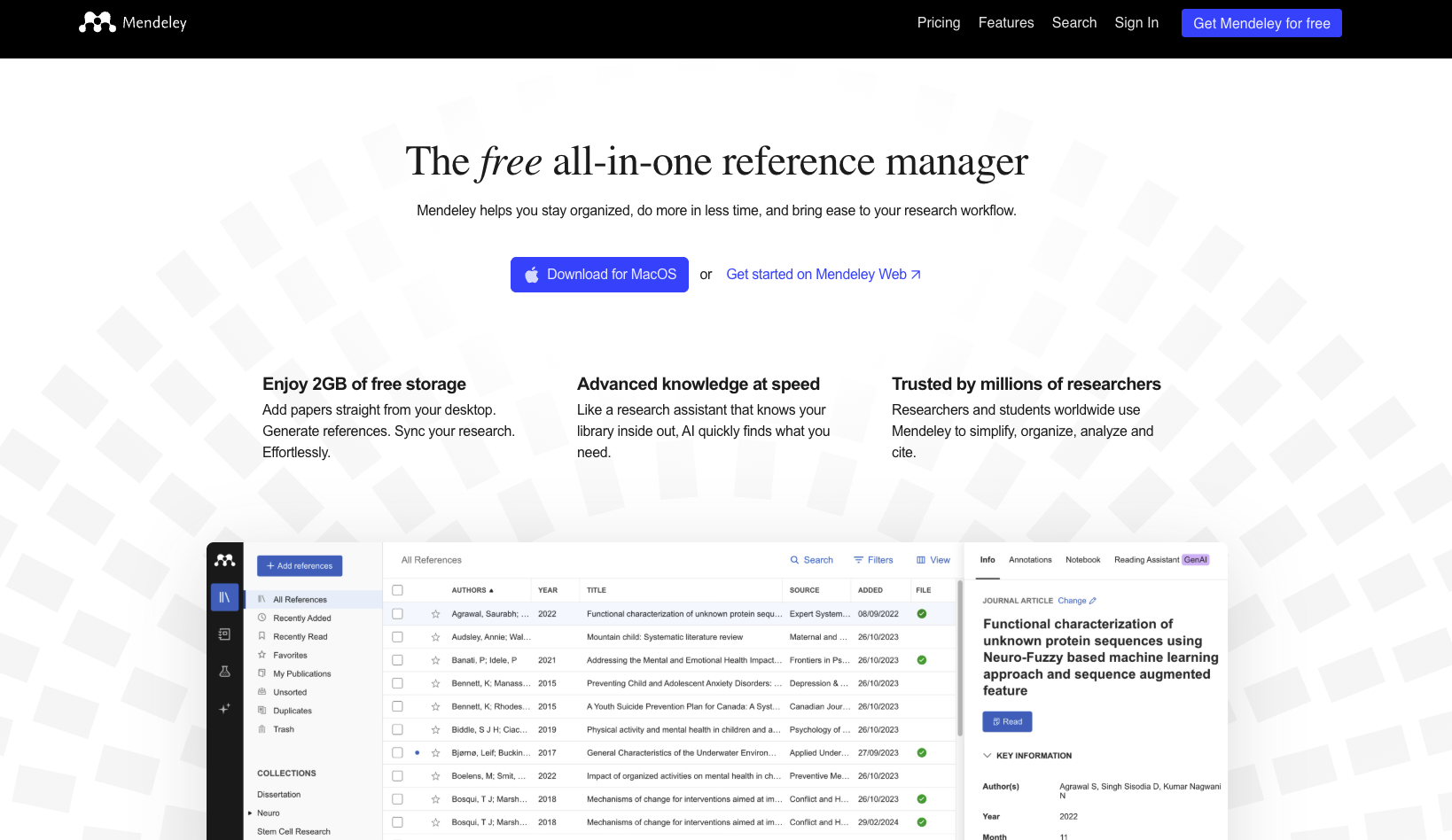 Who is Mendeley for? Mendeley is a good option if you want a single platform to organize references, read and annotate PDFs, establish a shared library with colleagues, and import citations into Microsoft Word. Mendeley’s free plan is ideal for users who need basic functionality and limited storage. Although it doesn’t integrate with Google Docs, you can still use Mendeley to find and organize references and export a bibliography to add to your document.