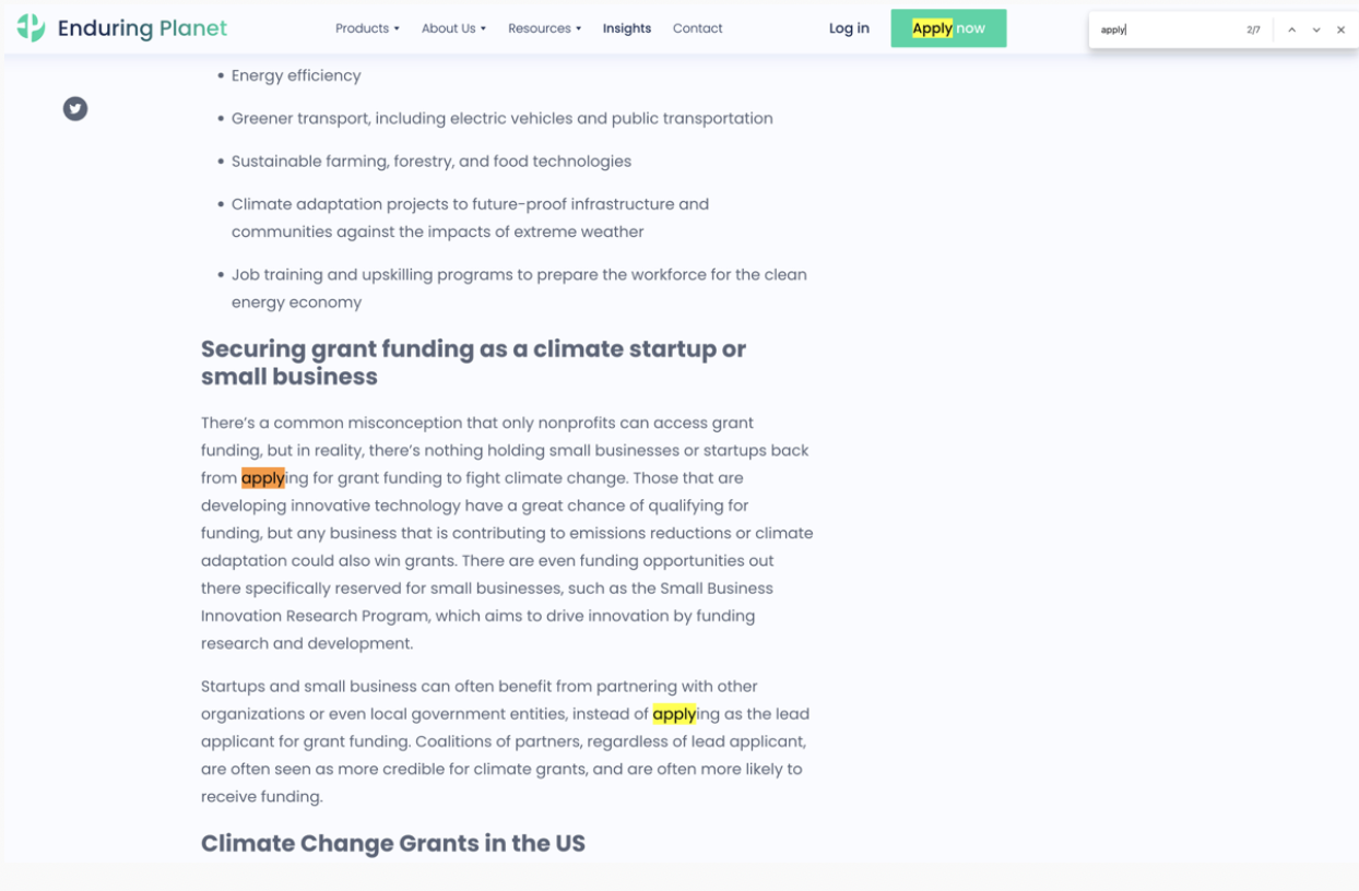 5. Search web pages for keywords. Once you get your search results, you may see several websites or pages that could have the information you need. When you open a page, use Control + F (PC) or Command + F (Mac) to search the page for your keywords. This search works well for things like searching on specific application guidelines like the application deadline, eligibility, or page limits. When you use this function, the word you are searching for will be highlighted, and you can navigate to each mention using the up and down arrows in the search bar.